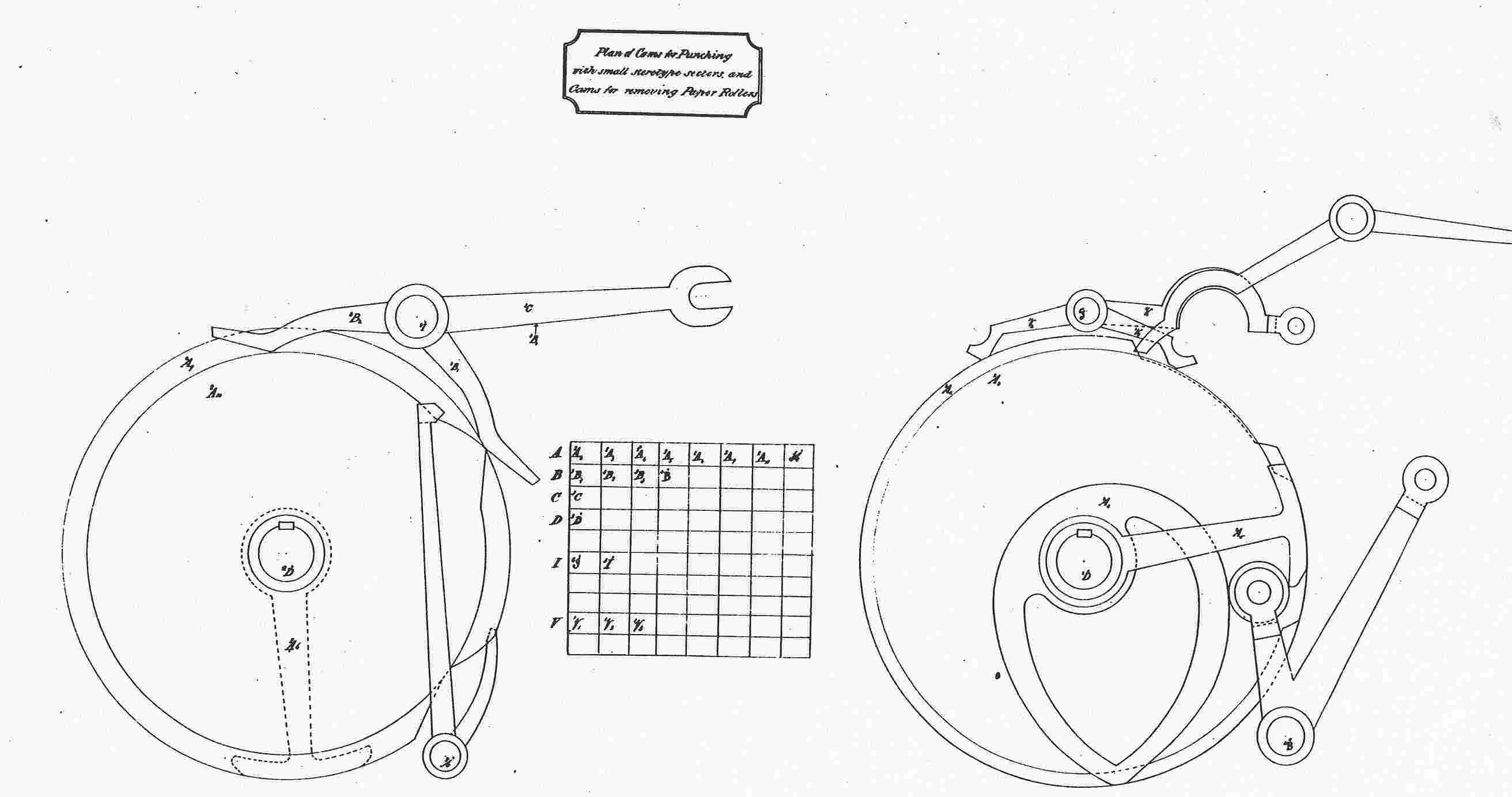 Abb.18: Plan of Cams for Punching with small stereotype sectors, and Cams for removing Paper Rollers.